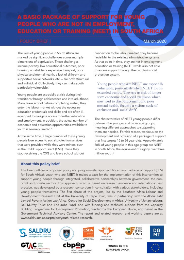 This report outlines the design and feasibility of a comprehensive, long-term support intervention for NEET youth in South Africa, including a proposed pilot and national framework.